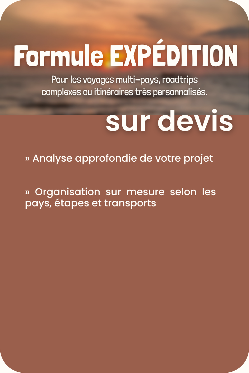 Choisissez la formule qui vous convient et remplissez le formulaire en détaillant vos envies, votre budget et votre style de voyage. C’est votre point de départ pour un séjour sur-mesure.